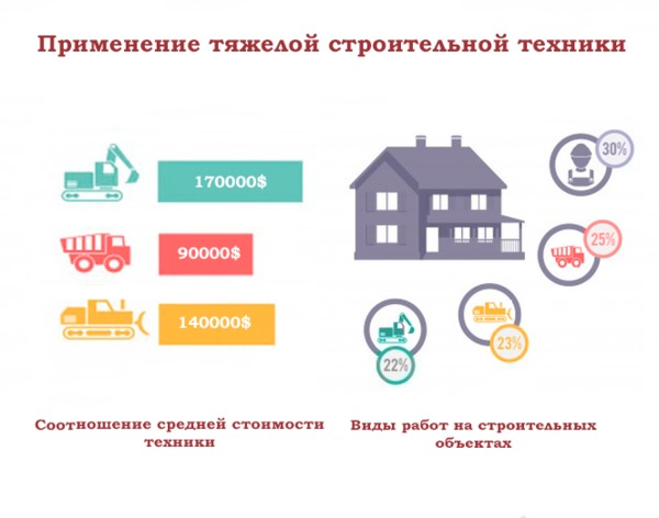| 2. Среднегабаритная. Спецсредства массой до 12 тонн и мощностью силовой установки, не превышающей 200 л.с. К этой категории относятся 70% от всей строительной спецтехники. Экскаватор, самосвал и бульдозер относятся к среднегабаритной строительной техники. Применяются застройщиками категории малого и среднего бизнеса. | |